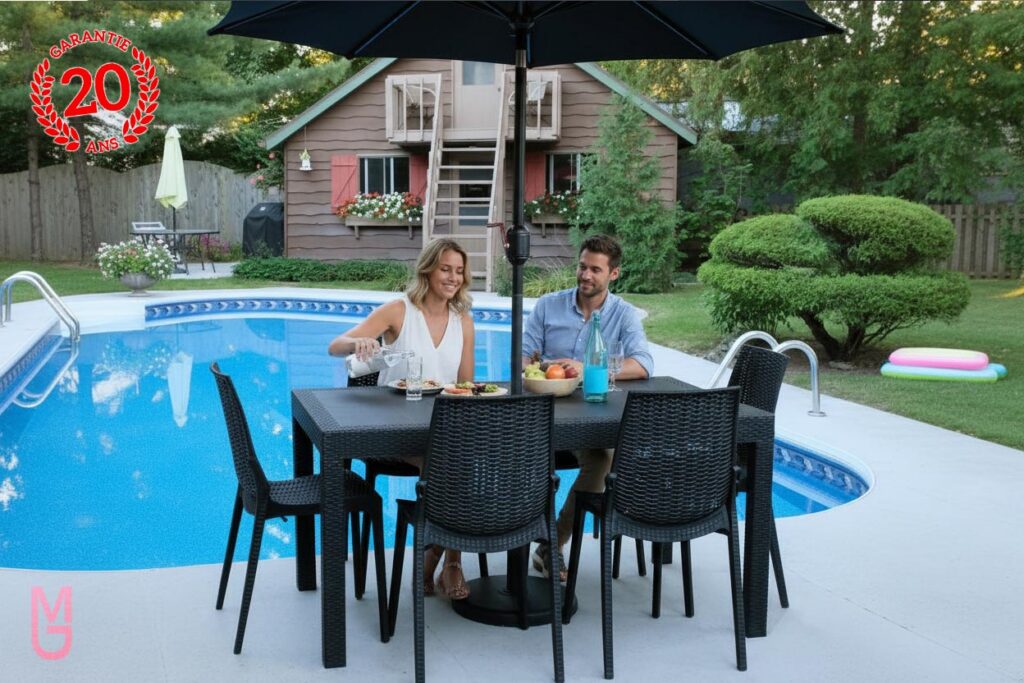 Meubles Dépôt patio furniture are made 100% from polypropylene and they are built to last. You’ll be able to enjoy your set for many years to come!